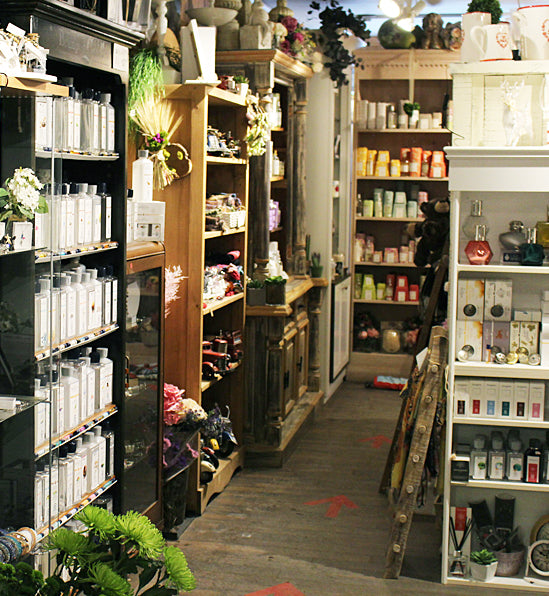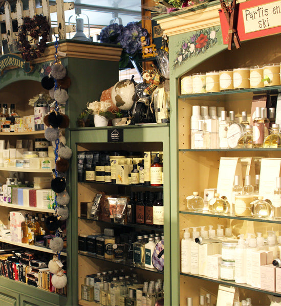 Produits québécois : Bleuets du Lac-Saint-Jean, Casa Luca, Dans un jardin, Maison Lavande. Importations : Crabtree Evelyn, Lampes Berger, Savon de Provence.